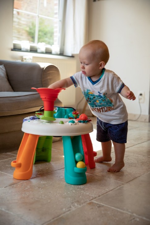 Maak kennis met onze Learn & Discovery Table! Met kleurrijke ballen die ronddraaien en door gaten vallen, leuke muziek en coole dierengeluiden is het perfect voor kleintjes om te leren en te spelen. Zie hoe je kind oorzaak en gevolg onderzoekt terwijl het zich amuseert met licht en muziek!