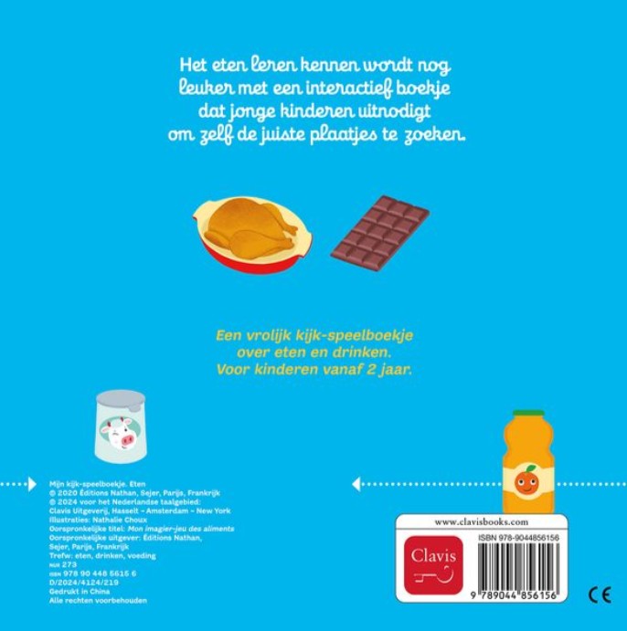 Het eten leren kennen wordt nog leuker met een interactief boekje dat jonge kinderen uitnodigt om zelf het juiste eten te zoeken. Een vrolijk kijk-speelboekje over eten en drinken.