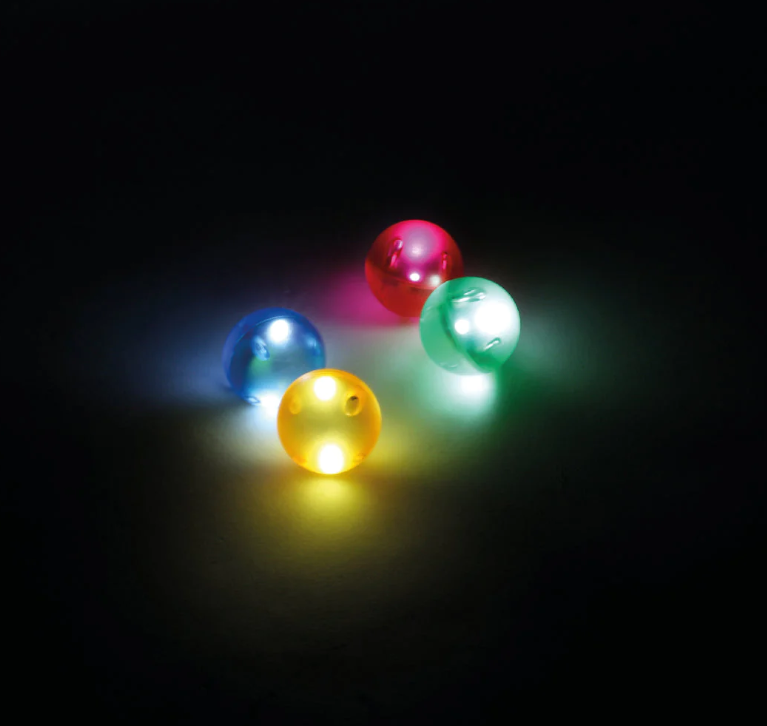 Maak je Ball run éxtra leuk met deze lichtgevende balletjes. Demp het licht in de kamer een beetje en racen maar! Deze leuke balletjes geven licht in het donker en werken op beweging.