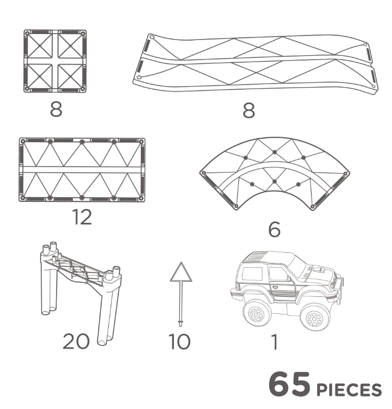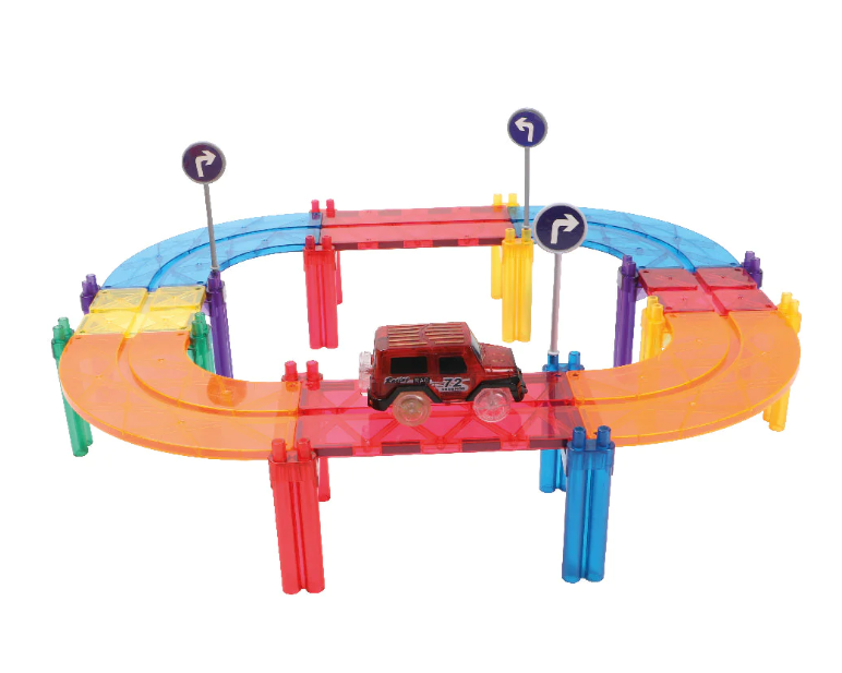 Er worden verkeersborden, een autootje en pilaren meegeleverd voor extra veel plezier.