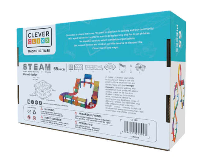 Ook leuk! Bouw tegen de verwarming of andere magnetische oppervlakken en maak zo een verticaal kunstwerk. Of teken er met uitwisbare stiften allerlei letters en cijfers op en ga zo creatief aan de slag met de magnetische bouwsets van Cleverclixx.