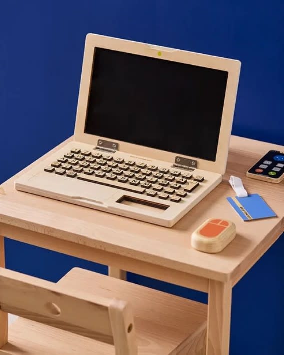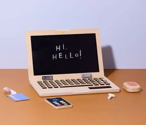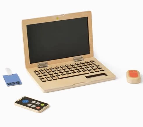 Het laptopscherm fungeert tevens als krijtbord, waarop kinderen kunnen tekenen en schrijven met krijt (niet meegeleverd). Deze speelset stimuleert fantasierijk kantoorspel en biedt kinderen een speelse en boeiende manier om de volwassen werkende wereld te verkennen.