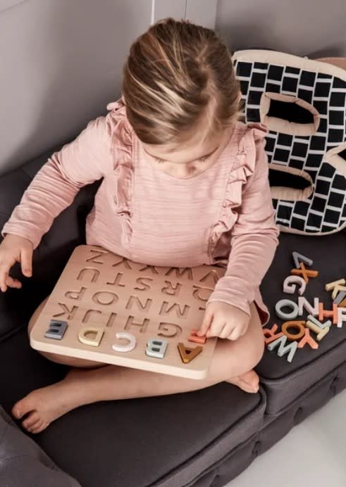 De puzzel bestaat uit de alfabetletters A-Z. Vorm de letters in de puzzel of gebruik de letters gewoon om leuke woorden te maken. De puzzel helpt het logisch denken van het kind te ontwikkelen en vormen te herkennen.
