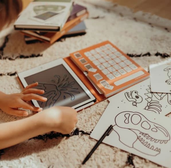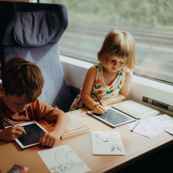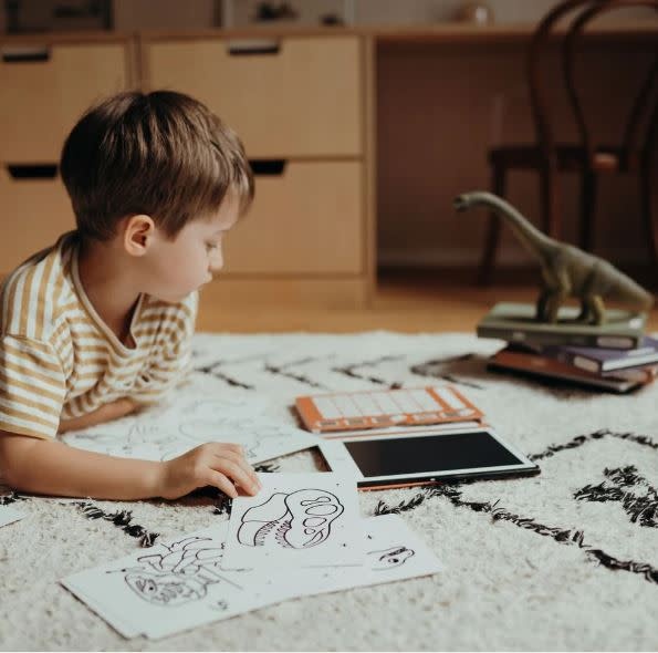 Ideaal om creativiteit en zelfstandigheid te stimuleren en past gemakkelijk in elke tas, zodat je altijd en overal tekeningen kunt maken. Een handig elastiek houdt het geheel dicht, net als een echt notitieboek, en voorkomt dat het karton van zijn plaats glijdt.