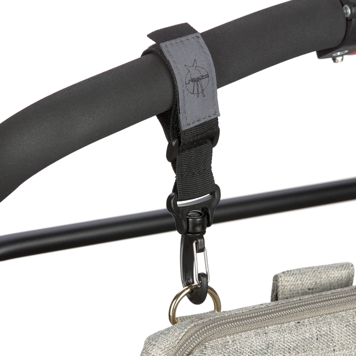 Deze praktische bevestigingshaken zijn geschikt om luiertassen aan vrijwel elk kinderwagenmodel te hangen.