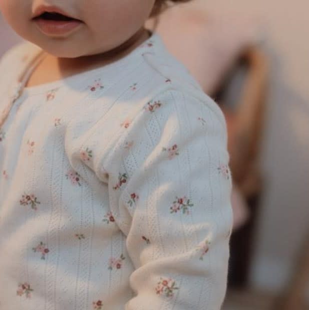 Ontworpen met een fijne pointelle structuur, heeft de onesie een charmante kleine bloemenprint en een fijn gestikt randje langs de sluiting en mouwen. De drukknoopsluiting aan de voorkant en bij het kruis zorgt voor gemakkelijk aan- en uitkleden, en luiers verschonen. Gemaakt van zacht biologisch katoen, past deze pyjama perfect bij het bijpassende beddengoed.