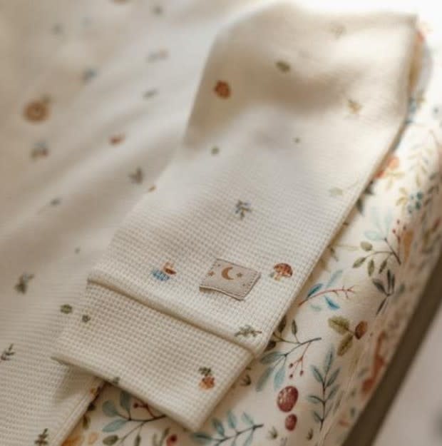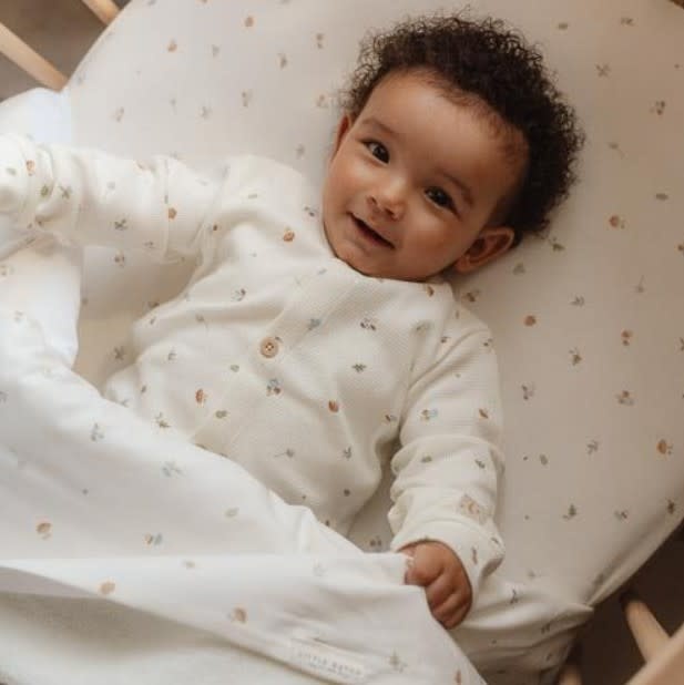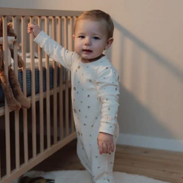 De pyjama sluit met hout-look knopen aan de voorkant en drukknoopjes bij het kruis zodat het aan- en uitkleden en het verschonen van luiers heel gemakkelijk is. Gemaakt van biologisch katoen voelt deze pyjama zacht aan op de huid van je baby en staat het perfect bij het bijpassende beddengoed. Verpakt in een mooie doos, dus extra leuk om cadeau te geven.