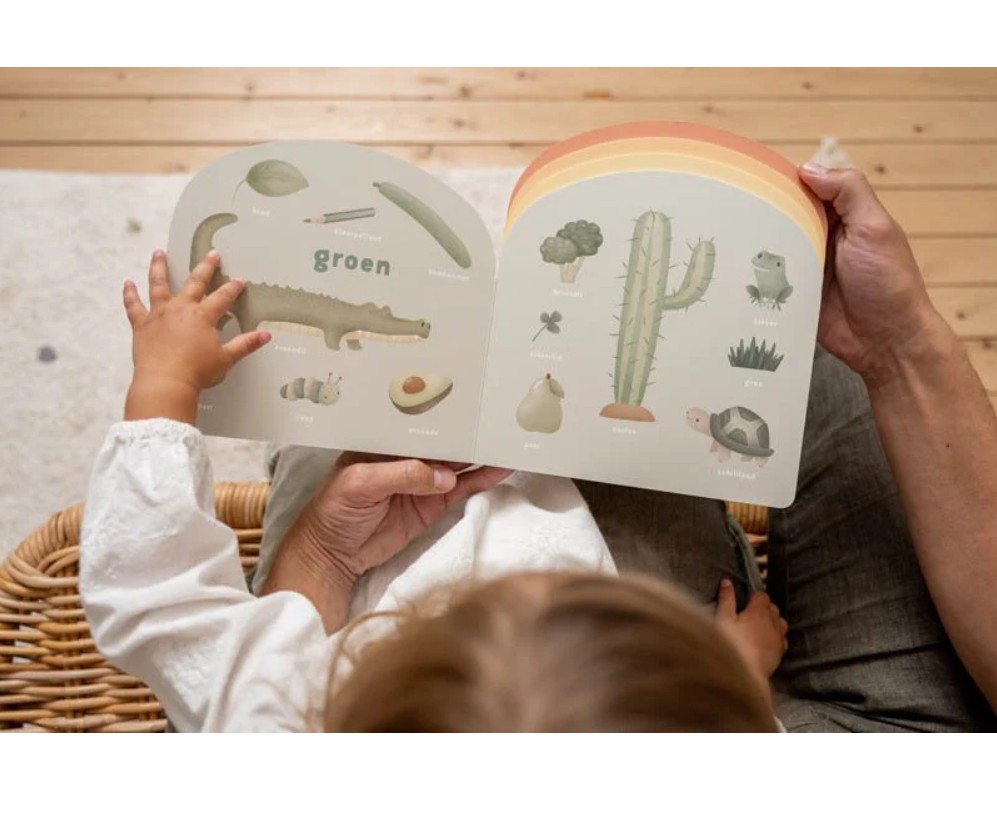 Welke kleur heeft de pen? En weet je ook welke kleur het gras is? Of de brandweerauto? Dit boek leert je alle kleuren van de regenboog met heel veel leuke plaatjes. Van dieren, groente en fruit, bloemen en planten, en allerlei alledaagse producten. Het Regenboog Kleurenboek helpt je kindje kleuren te herkennen en benoemen. Op een speelse manier en met behulp van mooie tekeningen leert je kindje de kleuren blauw, groen, geel, oranje en rood. Daarnaast bevordert het ook de woordenschat en zorgt het voor een heerlijk ouder-kind momentje.