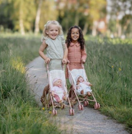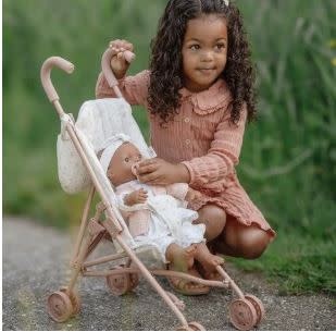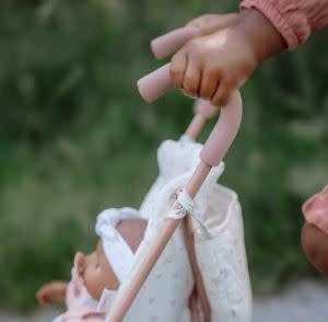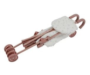 De zitting is versierd met het betoverende White Meadows dessin, en de bijpassende tas aan de handvatten biedt opbergruimte voor alle belangrijke poppenspullen. De riem zorgt ervoor dat de babypop goed blijft zitten tijdens wandelingen. De metalen poppenbuggy met een roze frame, roze handvatten en 4 roze wielen is ontworpen om fantasierijk spel te bevorderen en een gevoel van verantwoordelijkheid te koesteren bij jonge verzorgers. De buggy kan eenvoudig worden opgevouwen, waardoor opbergen een fluitje van een cent is. Kijk hoe jouw kindje vrolijk de poppenbuggy rondduwt, liedjes zingt en pauzeert om de denkbeeldige baby te voeden of te troosten, en op die manier levensvaardigheden leert door de magie van spelen.