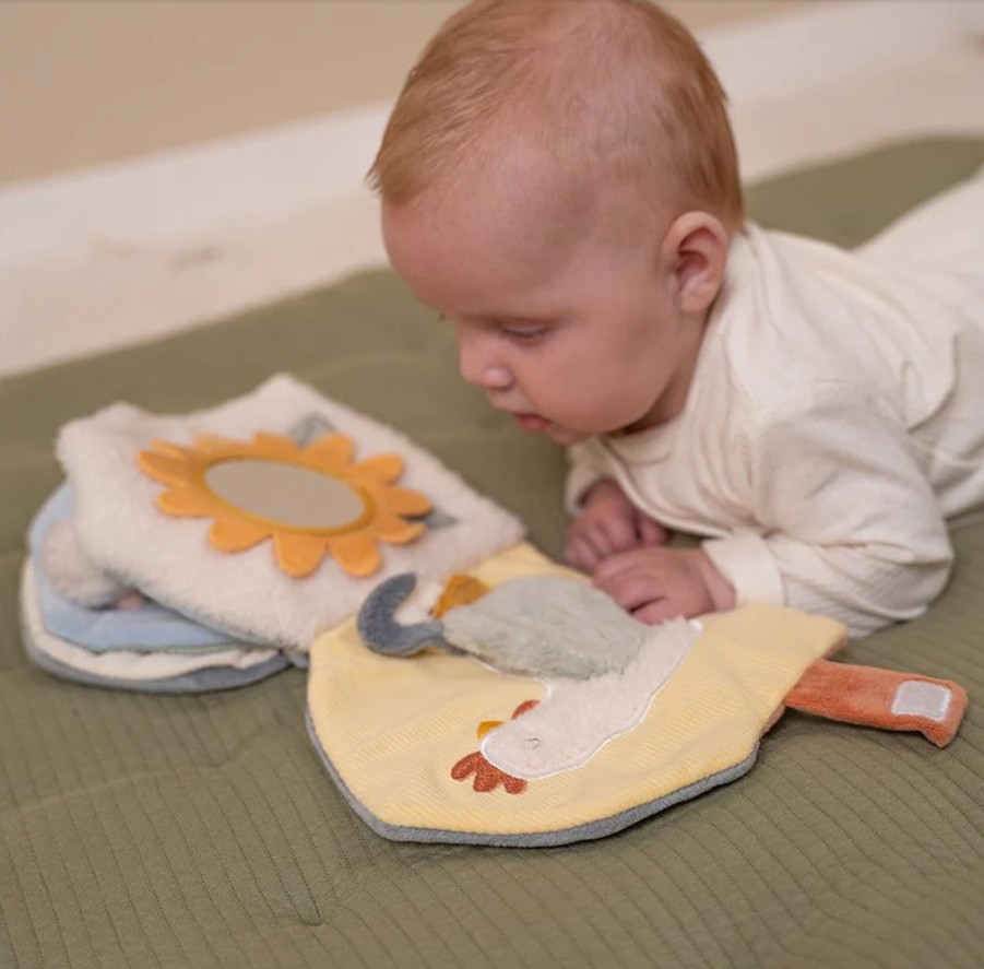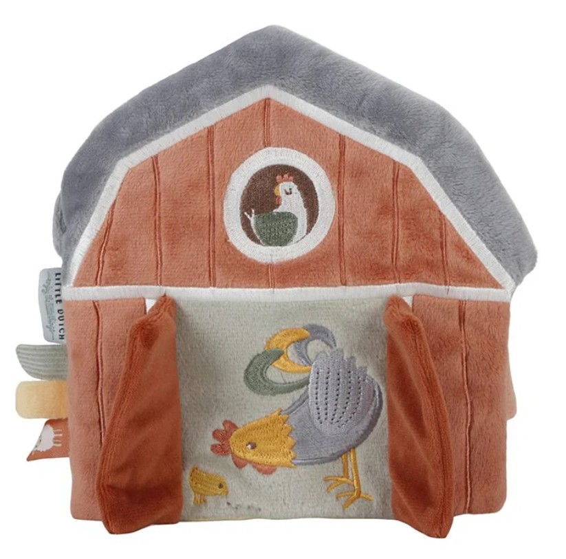 Baby’s vervelen zich geen moment met dit kleurrijke activiteitenboekje van Little Farm in de vorm van een schuur. Er valt veel te beleven met de verschillende materialen en activiteiten, zoals een spiegeltje, rammelaar en verstopte speeltjes. Ook heeft het zachte boekje verschillende labels om aan te voelen. Dit prikkelt niet alleen de zintuigen, maar is ook goed voor de ontwikkeling van de hand-oogcoördinatie.