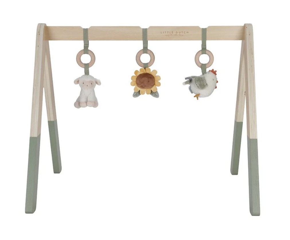 Omhoog met die kleine armpjes! Nieuwsgierige baby’s vermaken zich kostelijk met deze houten babygym. Er zijn drie verschillende activiteitenspeeltjes die voor het vermaak zorgen, waaronder een vrolijk schaapje, een lief kipje en een kleurrijke bloem. De babygym ontwikkelt de hand-oogcoördinatie, verbetert de motoriek en stimuleert de zintuigen elke keer dat je kleintje naar een van de speeltjes grijpt.