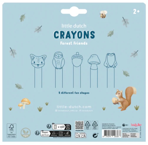 Tijd om samen de wereld van kleur te ontdekken! Met deze vrolijke waskrijtjes in de vorm van bosvriendjes maakt jouw kleintje de mooiste kunstwerken. Een vosje, een uiltje, een paddestoel… stuk voor stuk figuren om van te houden. De krijtjes zijn makkelijk vast te houden voor kleine handjes en stimuleren de fijne motoriek tijdens het spelen.