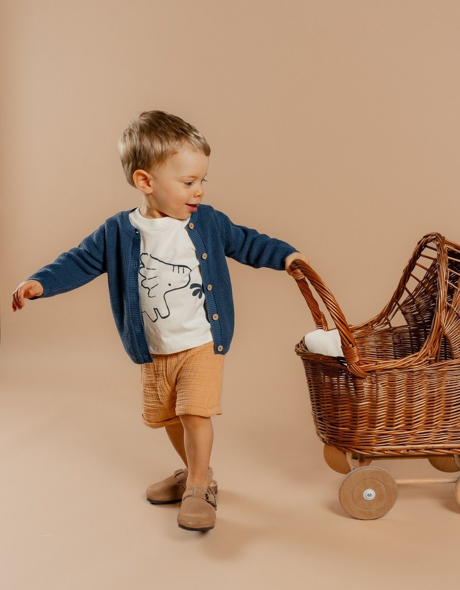 Gebruiksgemak: De knopen aan de voorkant zorgen voor gemakkelijk openen en sluiten, wat handig is voor kinderen en hun zelfstandigheid bevordert terwijl ze leren zichzelf aan te kleden.
