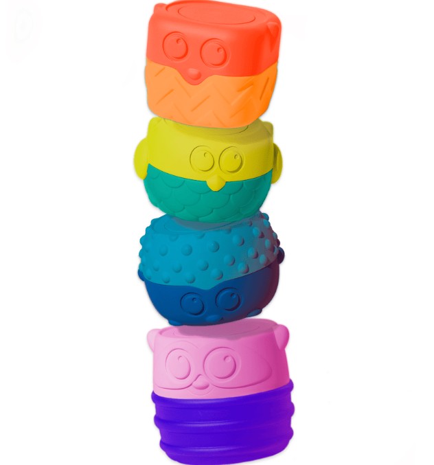 De Magnetic Stacking Pals bestaan uit vier veelkleurige figuurtjes met verschillende texturen.