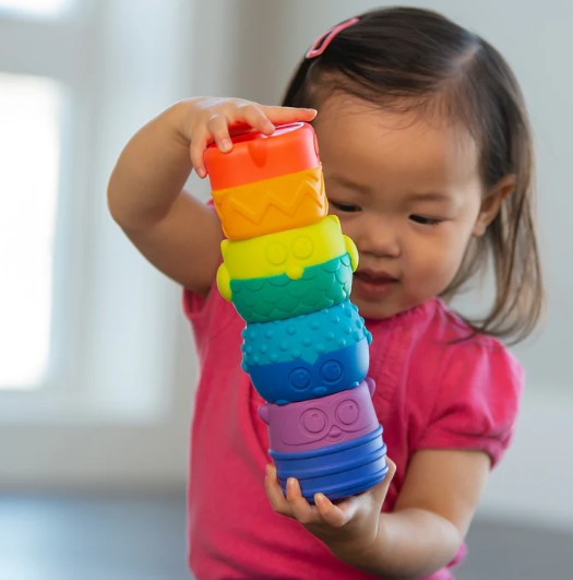 Kindjes kunnen zo alle kleuren stapelen om een regenboog van plezier te creëren.