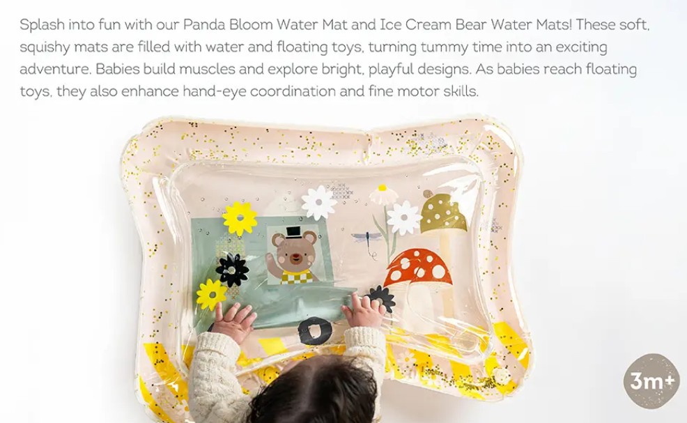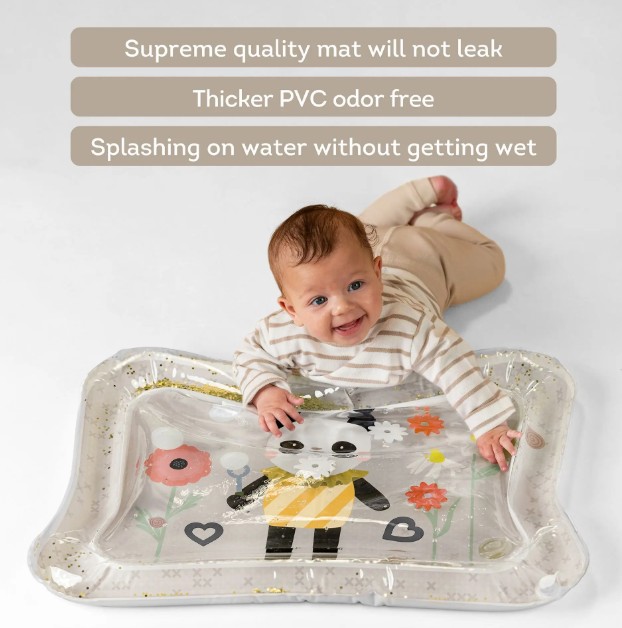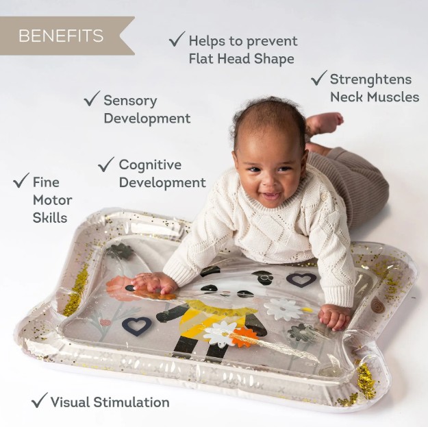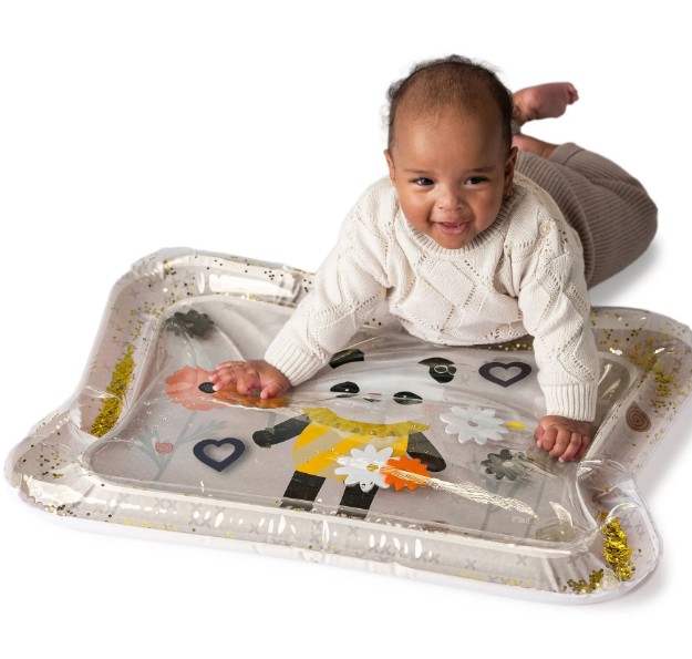 Duik in het plezier met deze watermat! De zachte, squishy mat is gevuld met water en drijvend speelgoed, waardoor buikliggen een spannend avontuur wordt. Baby’s bouwen spieren op en ontdekken vrolijke, speelse figuurtjes. Door naar het drijvende speelgoed te reiken, verbeteren baby’s ook hun hand-oogcoördinatie en fijne motoriek. De watermat is gemakkelijk schoon te maken en perfect voor baby’s vanaf 3 maanden.