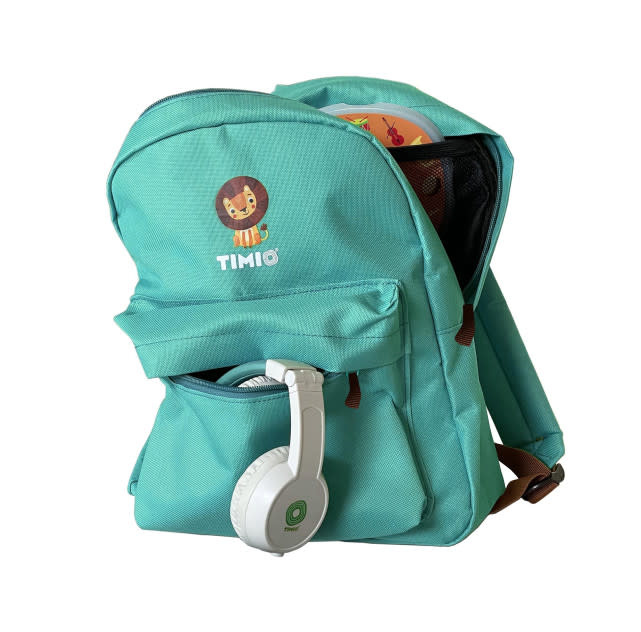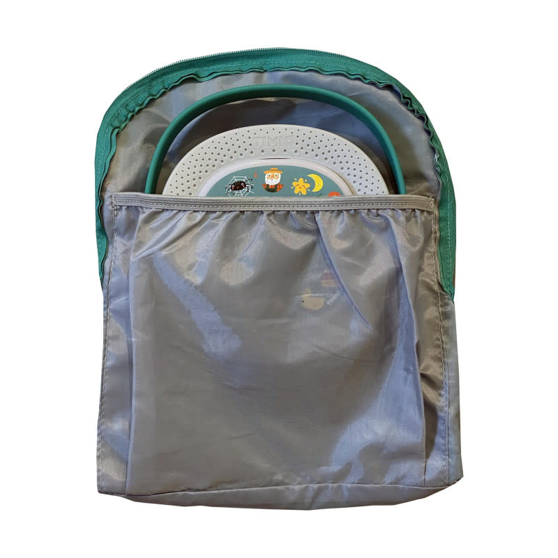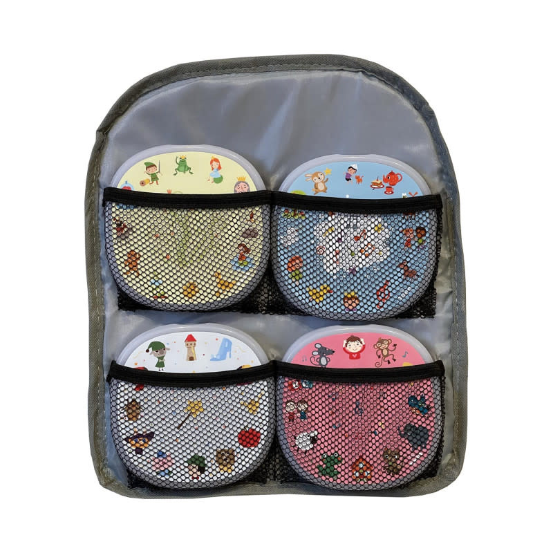 De rugzak is waterafstotend en heeft twee ruime vakken. In het grote vak is er plek voor de audiospeler en je vindt er 4 verschillende vakjes waarin de schijfjes perfect passen. Het tweede vak vooraan is dan weer ideaal om de koptelefoon op te bergen. En dan is er nog voldoende ruimte over voor de favoriete knuffel van je kindje!