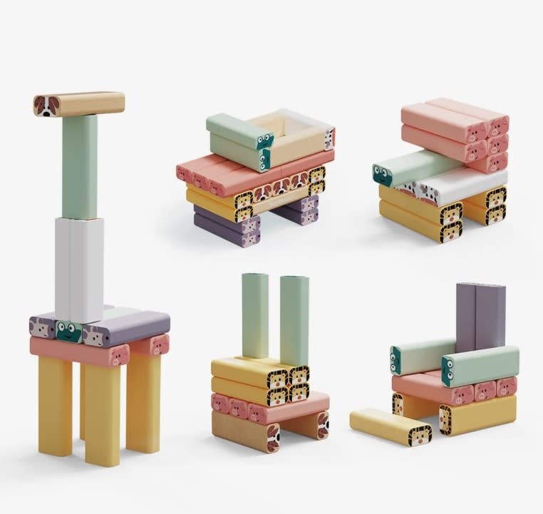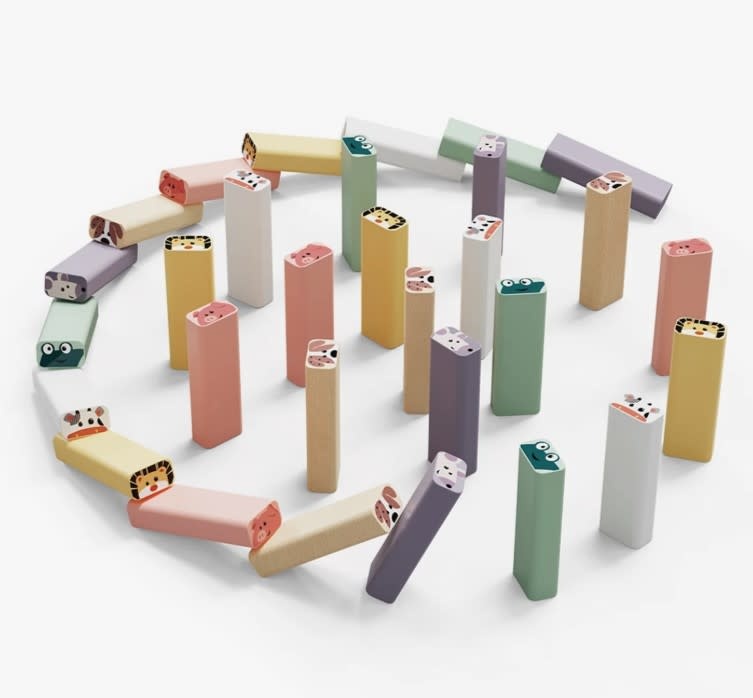 Kinderen laten hun fantasie de vrije loop bij het bouwen van creatieve constructies met de kleurrijke houten blokken. De houten blokken moedigen kinderen ook aan om steeds weer nieuwe patronen te creëren tijdens het dominospelen. Het leuke educatieve speelgoed bevordert op speelse wijze de ontwikkeling van jonge kinderen en stimuleert hun creativiteit. Tegelijkertijd trainen kinderen hun geduld, behendigheid en hand-oogcoördinatie.