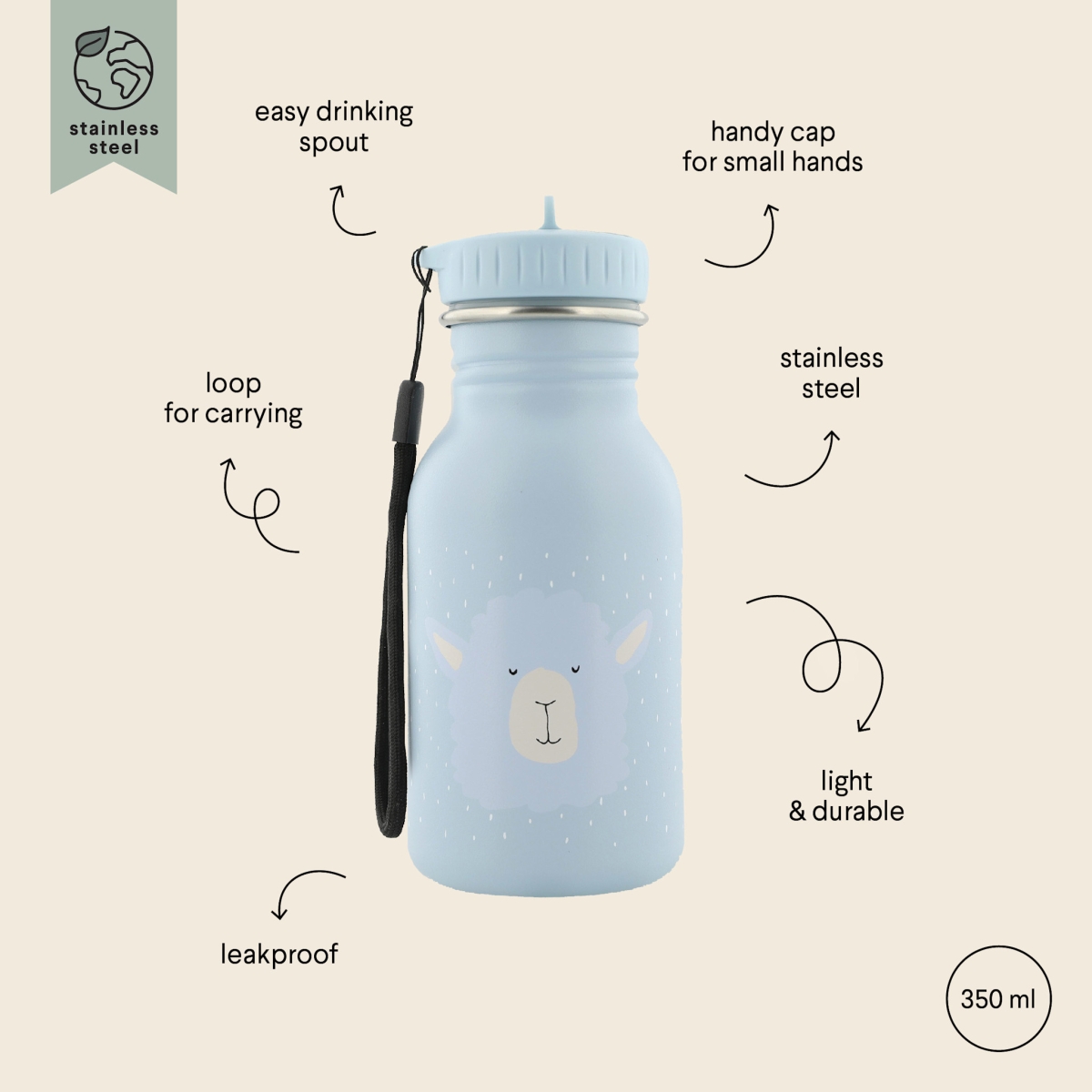 Het materiaal is licht, goed bestand tegen elke slag of stoot en geeft geen giftige stoffen af aan het water. Door de eenvoud in design, is de fles makkelijk schoon te maken. Gebruik een flessenborstel en warm water met afwasmiddel. De flessen zijn volledig lekvrij. De handige dop is zo ontworpen dat kleine handjes hem gemakkelijk kunnen openen en sluiten. Iedere fles is voorzien van een touwtje waarmee je de fles makkelijk kan dragen of vasthangen in een rugzak. De drinkfles wordt geleverd inclusief dop.