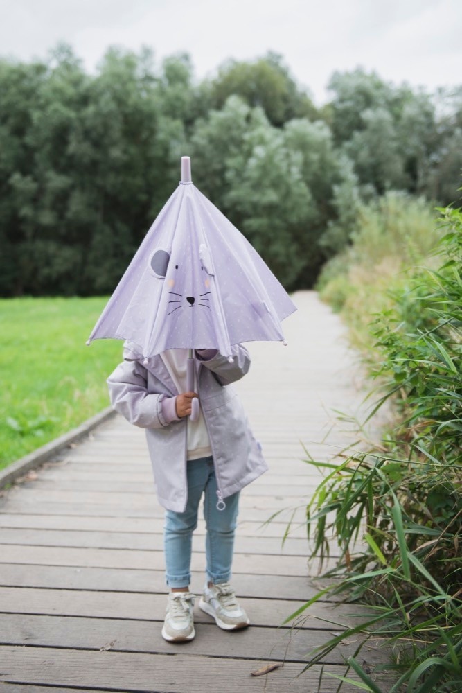 Hun flaporen wapperen vrolijk in het rond bij het springen in de plassen en dansen in de regen! De paraplu’s zijn gemaakt van 100% gerecycleerd polyester. Het schuifsysteem om de paraplu te openen en te sluiten, is speciaal ontworpen voor kinderhandjes, zodat kinderen veilig en vlot de paraplu kunnen gebruiken. De paraplu heeft een sterk, kwalitatief en erg licht aluminium frame. Als de zon weer schijnt, kan je met de dierenstaart de paraplu weer netjes opbergen!