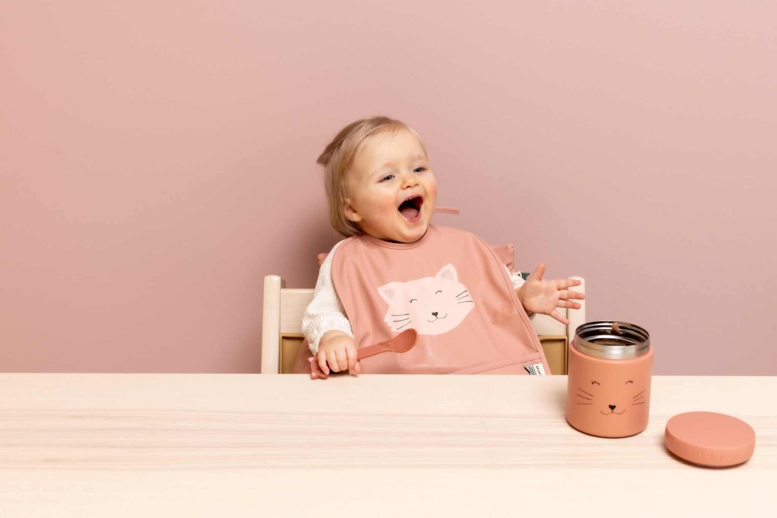 In de lepel is een roestvrijstalen onderdeel geïntegreerd om de lepel sterk en recht te houden. Om deze reden mag dit product niet in de magentron. Silicone is een geweldig materiaal om te gebruiken in de keukenomgeving. Het breekt niet en is veilig te gebruiken in de vaatwasser, vriezer en oven. Zelfs bij intensief gebruik blijft het servies goed in vorm en kan het gemakkelijk worden doorgegeven aan kleine broertjes, zusjes of vrienden.