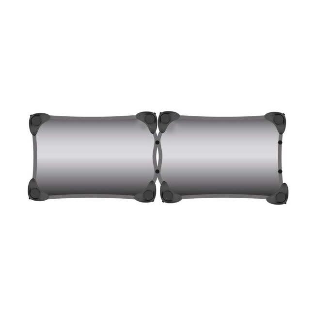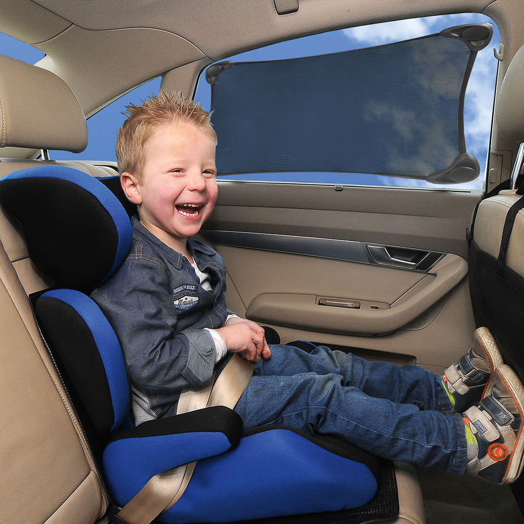 5.De verpakking bevat één zonnescherm met een afmeting van 30 cm x 45 cm, maar het kan uitgerekt worden tot een maximale maat van 40 cm x 55 cm. Je kunt ook twee schermen aan elkaar koppelen met behulp van de handige drukknoppen, voor grotere autoritten.